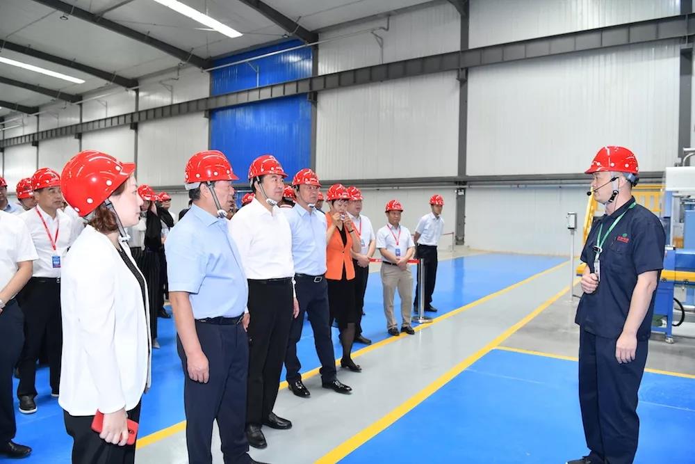 儀式結(jié)束后,現(xiàn)場(chǎng)嘉賓在工作人員的帶領(lǐng)下來(lái)到杉杉科技包頭生產(chǎn)車間,近距離觀摩包頭一體化基地的生產(chǎn)狀況。